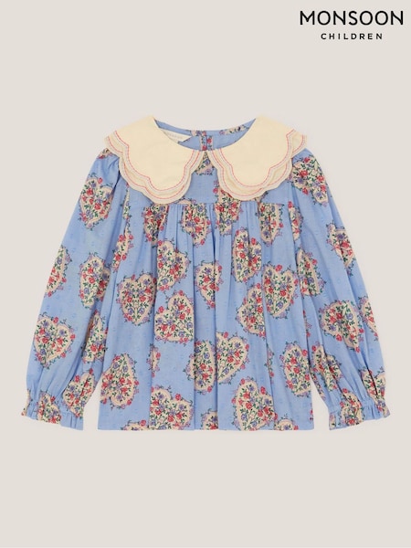 بلوزة بطبعة قلب بحواف مموّجة من Monsoon