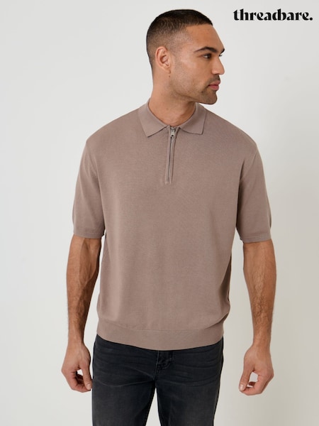 Threadbare Relaxed Fit Knitted Quarter Zip Polo Shirt