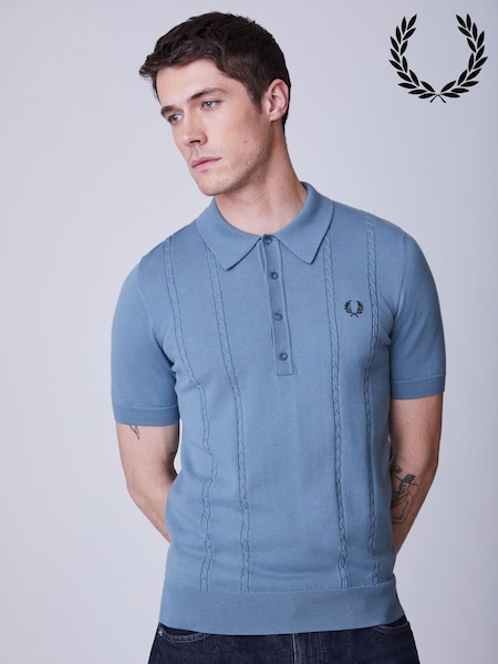أزرق فاتح - قميص بولو محبوك بخيوط طولية متداخلة من Fred Perry
