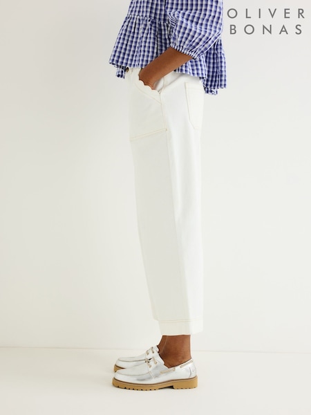 Oliver Bonas Ecru Scalloped Pocket Cropped Wide Leg Jeans