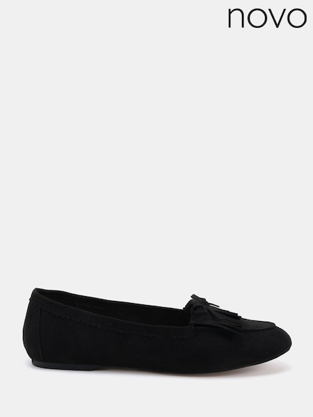 أسود - حذاء سهل اللبس بنعل مسطَّح بتفصيل فيونكة Flossy من Novo