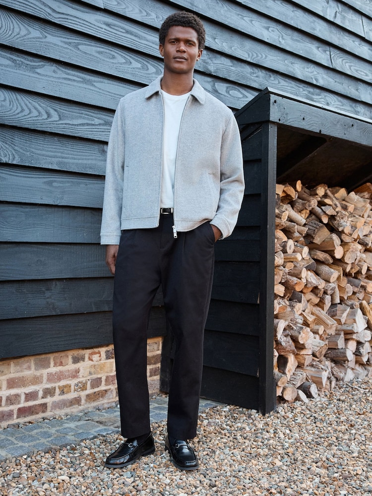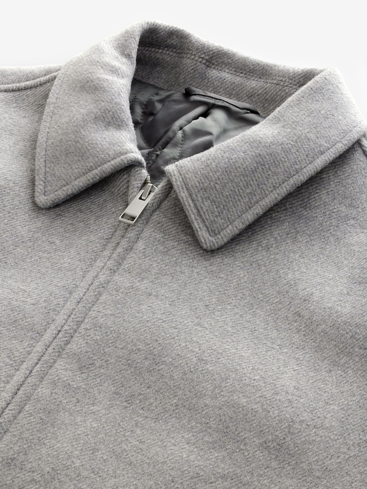 رمادي فاتح - سترة Harrington مبطنة ناعمة الملمس من نسيج يحتوي على الصوف