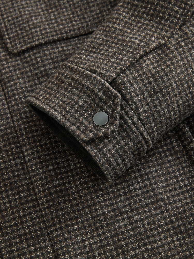 بني نقش صغير - معطف مبطن من الصوف بأربع جيوب