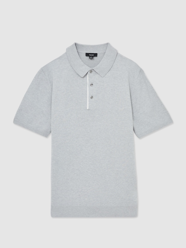 أخضر مريمي باهت - قميص بولو قطن بفتحة رقبة لون متباين تشكيلة Finch من Reiss