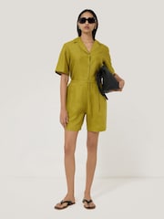 Add these linen Bermuda shorts to your warm weather repertoire for endless versatility. Vibrant in a chartreuse hue, our linens only gets better over time, becoming softer the more they are washed. Detailed with tie fastenings and a patch pocket at the back, wear with the matching shirt for a laidback co-ord. قابل للغسل في الغسالة. كتان 100%. بلد المنشأ: الصين