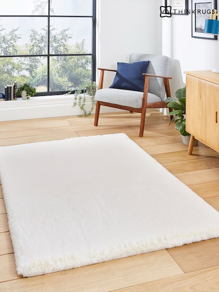 Think Rugs Ivory Super Teddy Plain Shaggy Rug