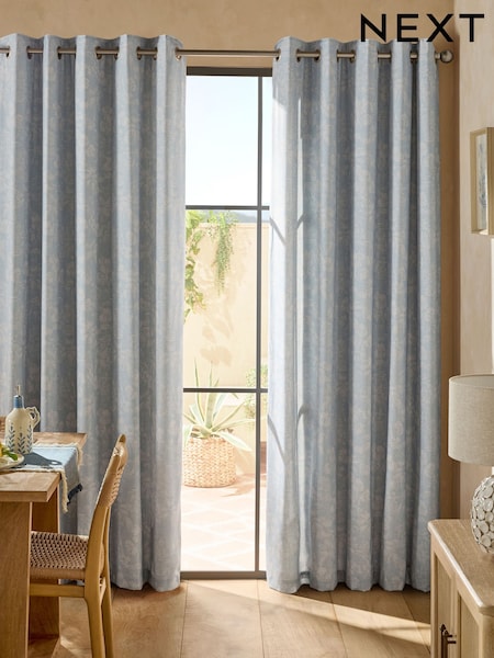 Laura Ashley Blue Pallington Bloom Blackout Eyelet Curtains