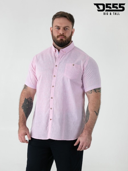 D555 Pink Linen Mix Short Sleeve Shirt With Button Down Collar & Pocket