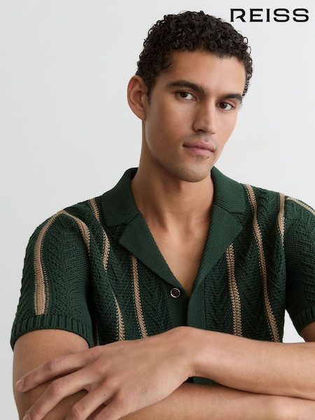 Reiss Dark Green/Camel Marek Cotton Block-Stripe Knitted Shirt
