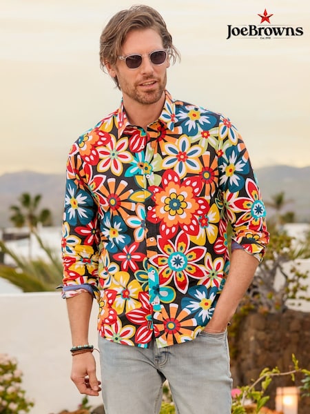 Joe Browns Red Floral Flashback Linen Blend Shirt