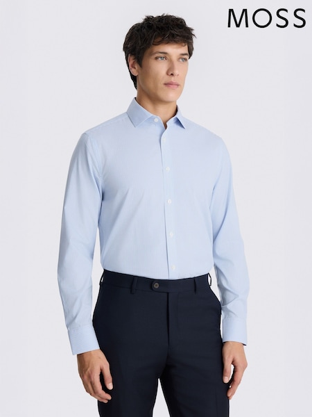 MOSS Blue Tailored Fit Stripe Non Iron Shirt