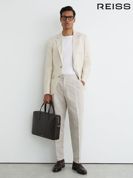 Reiss Oatmeal Finch Linen-Cotton Check Tapered Trousers