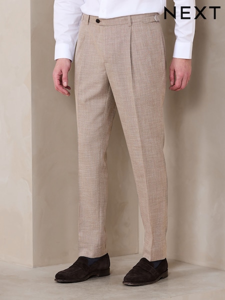 Stone Slim Fit Textured Smart Trousers with Side Adjuster