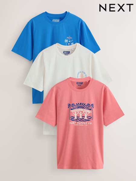 Blue / White / Pink Regular Fit Graphic Print T-Shirts 3 Pack
