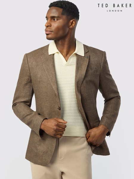 Neutral Regular Fit Signature 100% Linen Textured Blazer