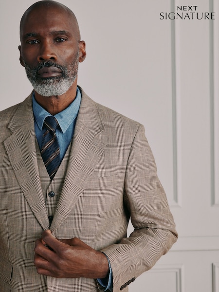 Neutral Tailored Fit Linen Blend Texture Suit Jacket