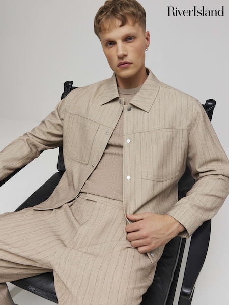 River Island Brown Boxy Pinstripe Smart Western Jacket