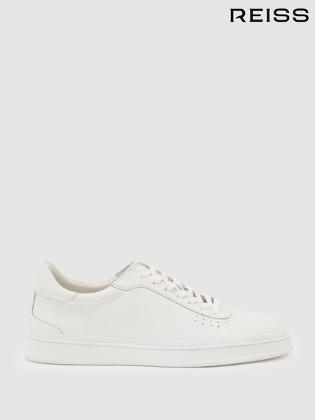 Reiss White Anders Leather Perforated-Detail Trainers