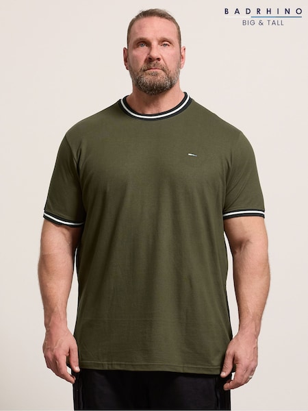 BadRhino Big & Tall Green Pique Ringer T-Shirt