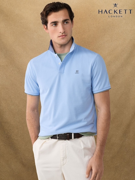Hackett Light Blue Short Sleeve Tipped Polo Shirt