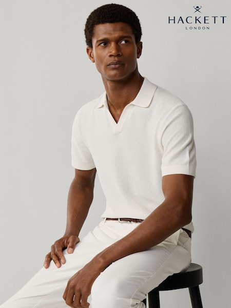 Hackett White Knitted Short Sleeve Polo Shirt