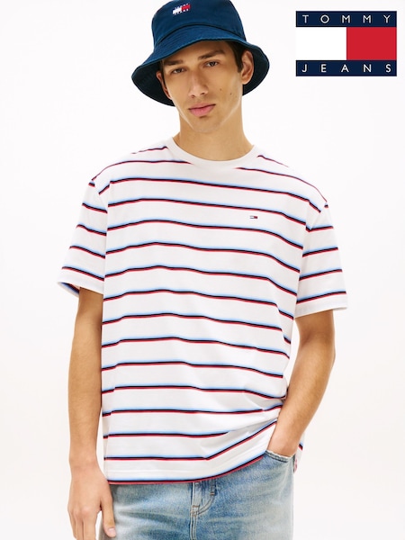 Tommy Jeans White Hilfiger Flag Stripe Relaxed Jersey T-Shirt