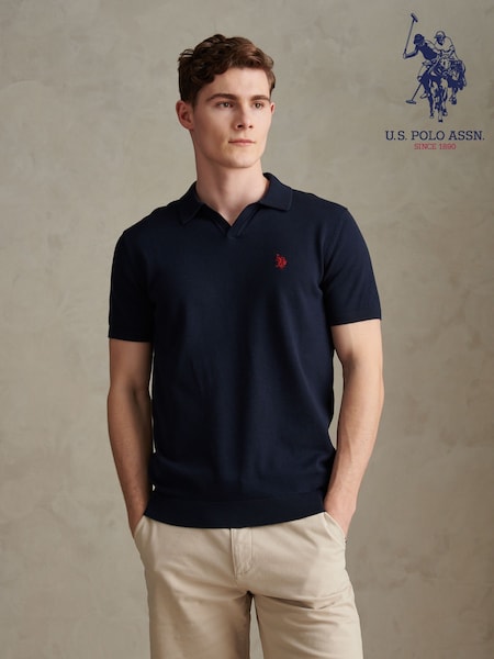 U.S. Polo Assn. Navy Moss Stitch Knit Polo Shirt