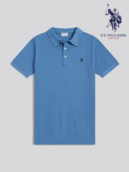 U.S. Polo Assn. Blue Moss Stitch Knit Polo Shirt