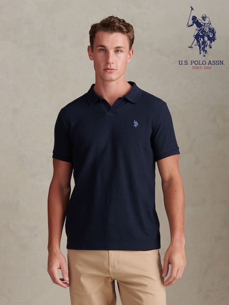 U.S. Polo Assn Navy Mini Vertical Texture Open Collar Polo Shirt