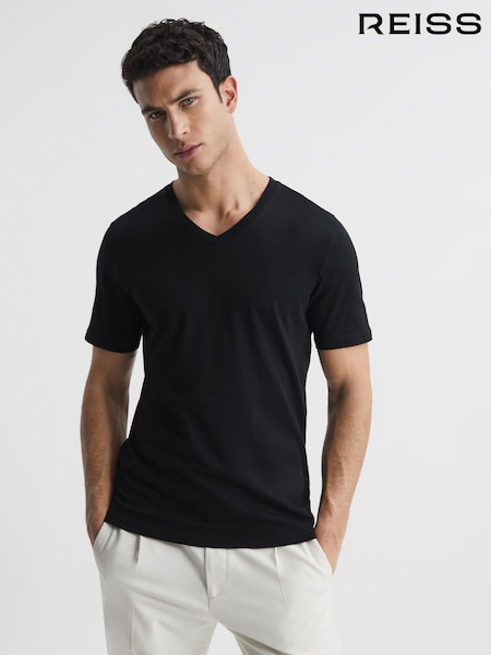 Reiss Black Dayton Cotton V-Neck T-Shirt