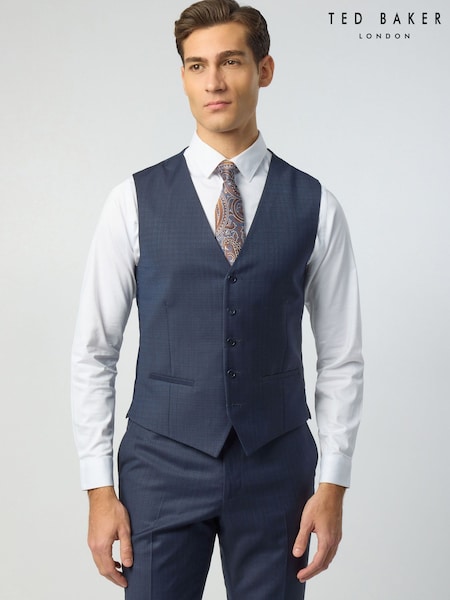Ted Baker Tailoring Blue Grid Texture Waistcoat