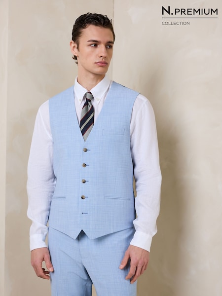 Light Blue N.Premium Wool Blend Motionflex Marl Texture Suit Waistcoat