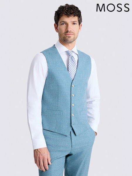 MOSS Teal Tailored Fit Slub Suit Waistcoat
