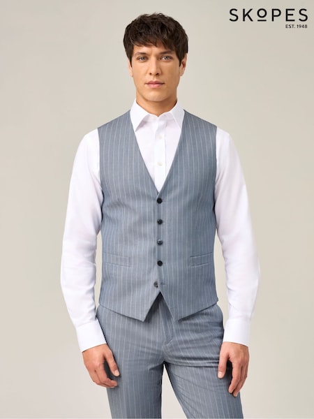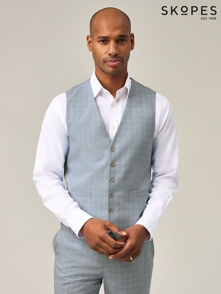 Skopes Blue Guildford Suit Soft Touch Check Waistcoat