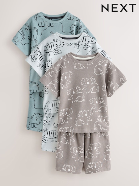 Blue/Grey Linear Print Short Pyjamas 3 Pack (9mths-10yrs)