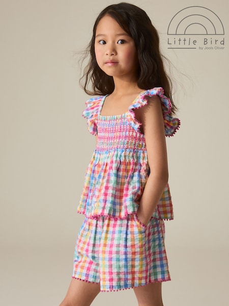 Little Bird by Jools Oliver Rainbow Gingham Frill Sleeve Woven Co-Ord Set