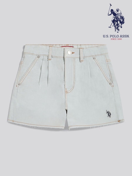U.S. Polo Assn White Pleat Detail Denim Shorts