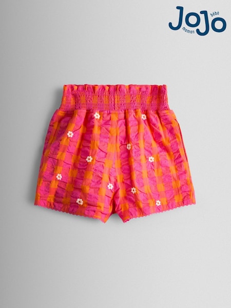 JoJo Maman Bébé Pink Smocked Waistband Embroidered Shorts