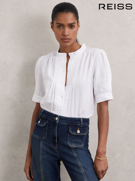 Reiss Ivory Aurelia Cotton Muslin Frill-Neck Top