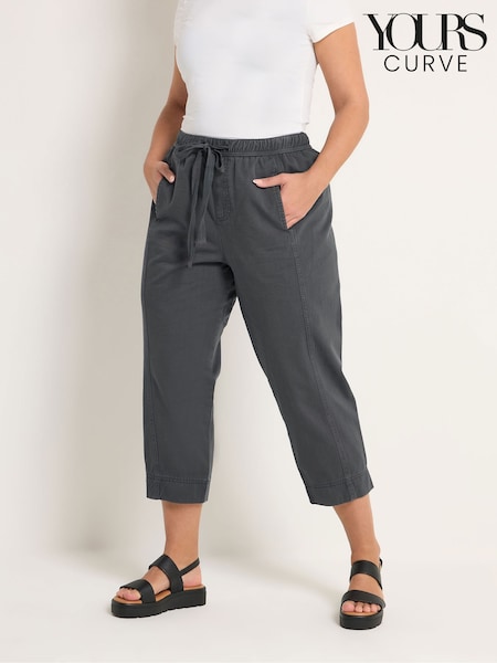 Yours Curve Grey Twill Tapered Trousers