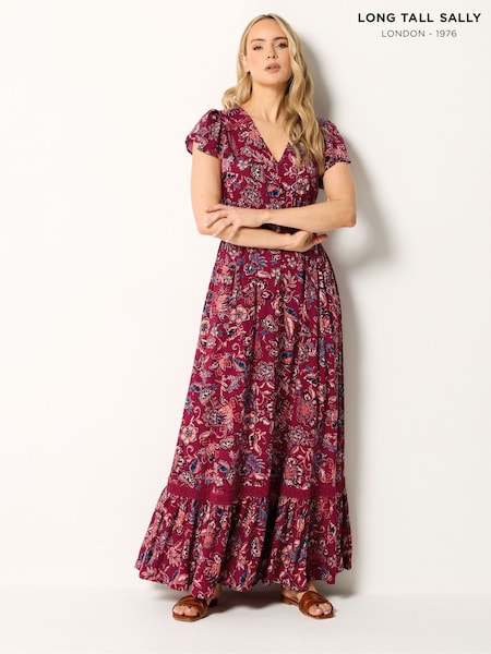 Long Tall Sally Red Floral Button Through Maxi Dress