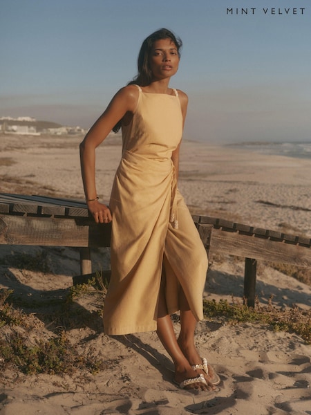 Mint Velvet Yellow Linen Blend Wrap Midi Dress
