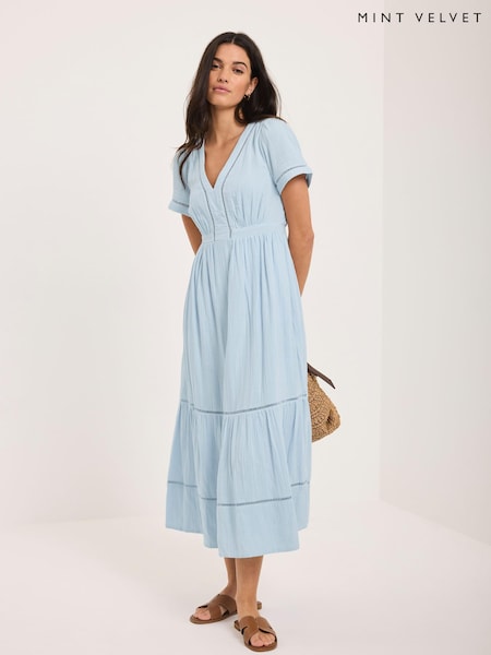 Mint Velvet Blue Cotton Short Sleeve Midi Dress