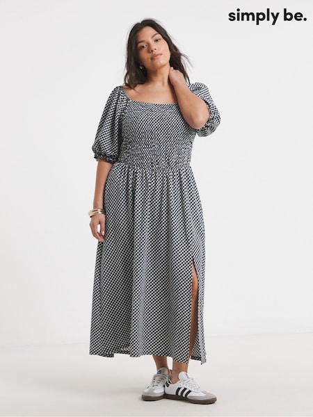 Simply Be White Waffle Shirred Midi Dress