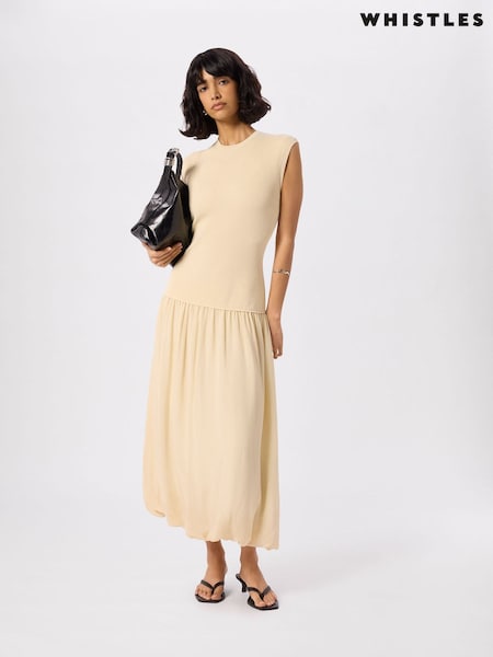 Whistles Yellow Knitted 2in1 Bubble Hem Dress