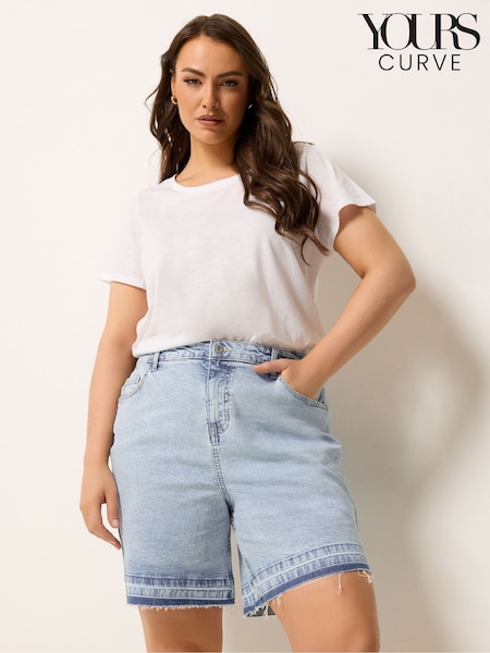 Yours Curve Blue Tie Dye Hem Denim Shorts