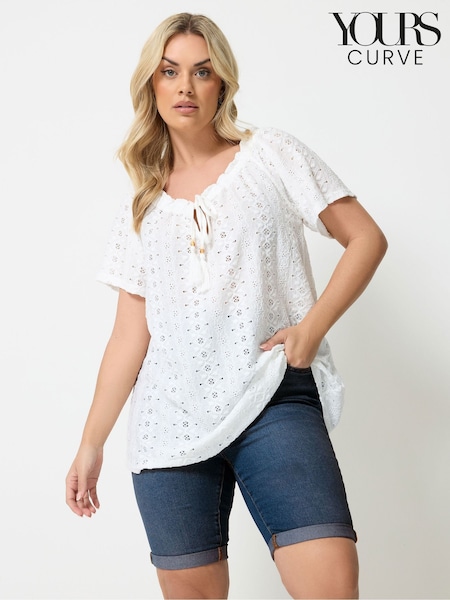 Yours Curve Light Blue Tie Waist Denim Shorts