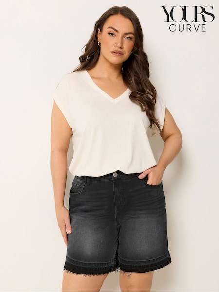 Yours Curve Black Turn Up Denim Shorts