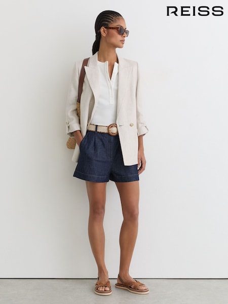Reiss Indigo Beau Cotton-Linen Belted Shorts