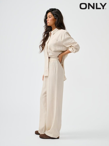 ONLY Cream Linen Blend Wide Leg Trousers